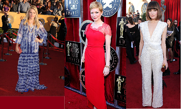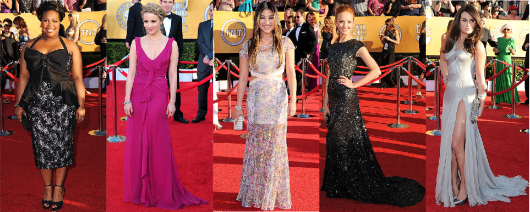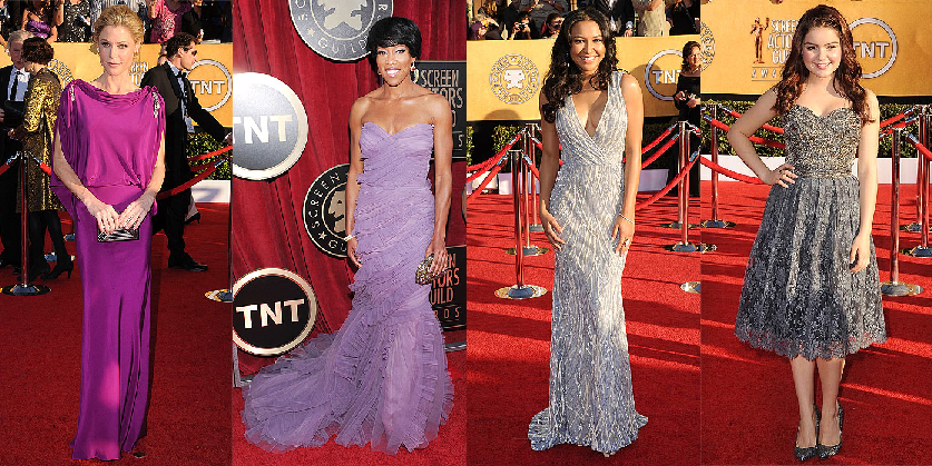 Since I don’t have cable, I wasn’t able to watch the actual SAG Awards. I am only able to cover the dresses from photos – which, as we know, can be quite different from how things look on film. That being said, I’m going to judge away like I saw both!